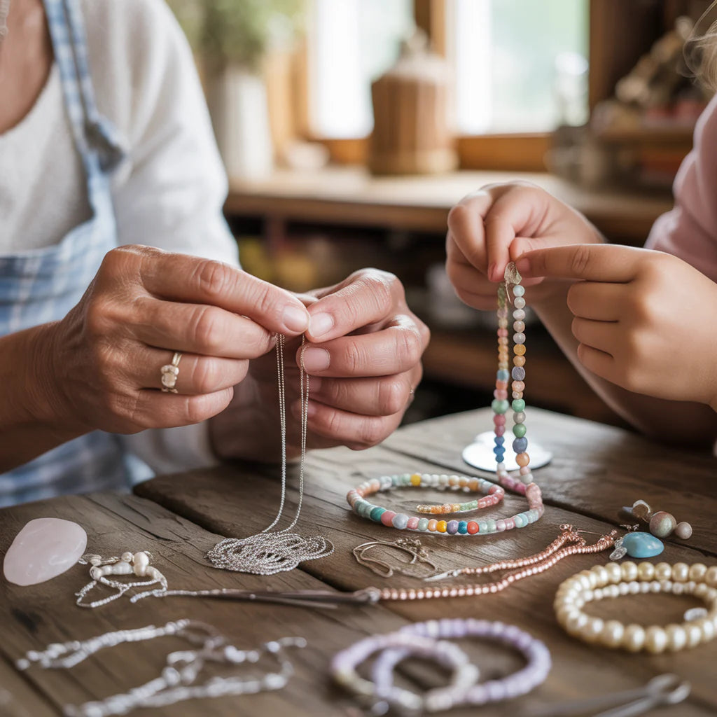 Alles begann auf dem Dachboden eines alten Hauses in Zürich, wo eine Grossmutter gemeinsam mit ihrer Enkelin zarte Schmuckstücke von Hand fertigte, inspiriert von Liebe, Erinnerungen und besonderen Momenten.
